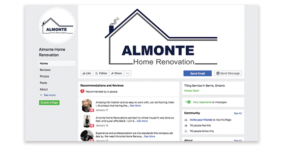 Almonte uses their Facebook Page to showcase their work to current and future customers as well as giving them a behind-the-scenes look at their projects.